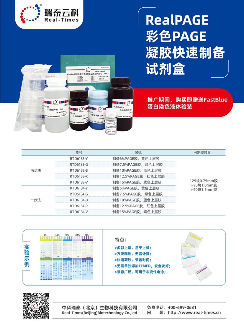 公司推出RealPAGE 彩色PAGE凝膠快速制備試劑盒