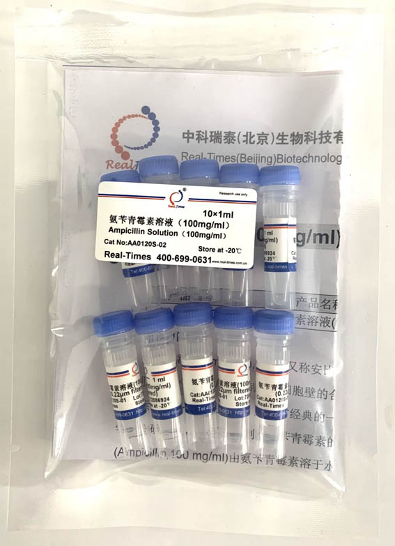 氨芐青霉素(Ampicillin, Amp)又稱安比西林、氨芐西林,是一種β-內(nèi)酰胺類抗生素,干擾肽聚糖的交聯(lián)從而抑制細(xì)菌細(xì)胞壁的合成。氨芐青霉素時(shí)常被用于分子生物學(xué)實(shí)驗(yàn)研究中,如用于配制含氨芐青霉素的LB培養(yǎng)基或LB平板等。氨芐青霉素溶液已經(jīng)0.22