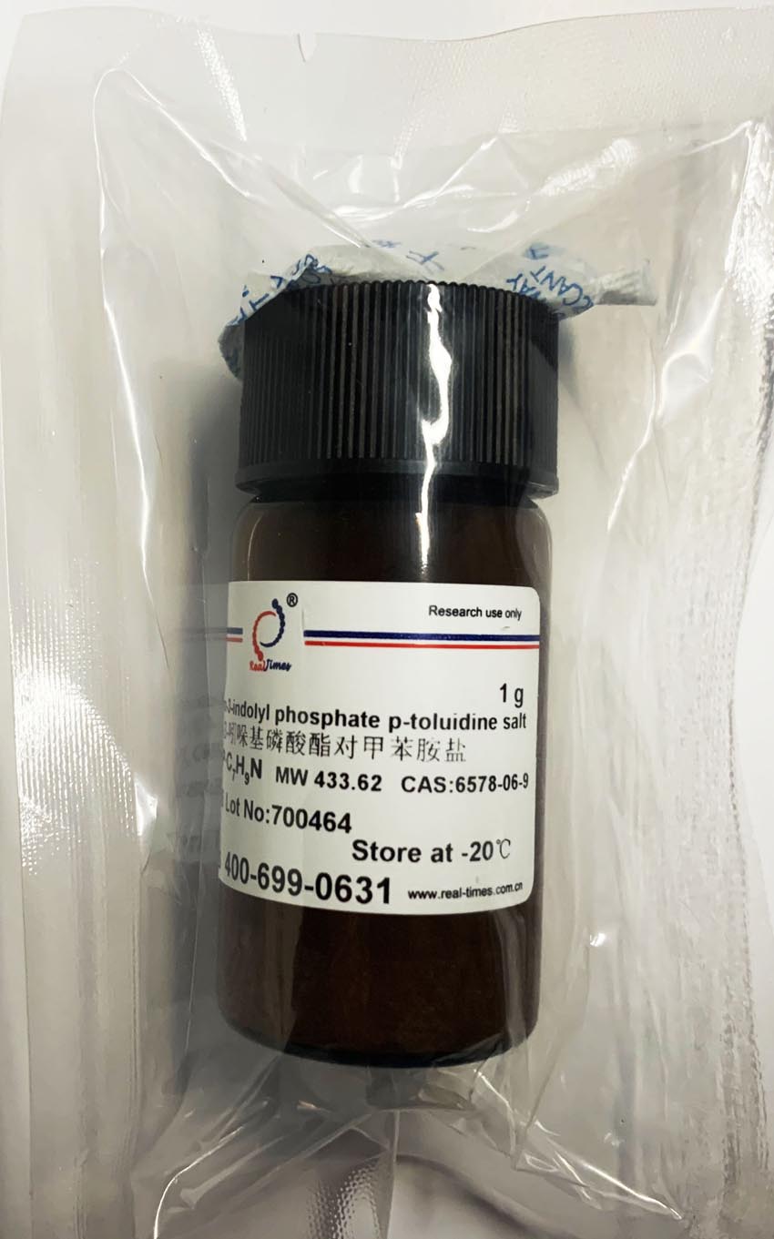說(shuō)明:BCIP and NBT are available for the colorimetric detection of alkaline phosphatase-labeled molecules. The BCIP/NBT substrate system is versatile and functions in a variety of applications, including Northern Southern, and Western blotting, in situ hybridization, and immunohistochemistry. BCIP is provided in two salt forms: the disodium salt which is soluble in water and the p-toluidine form which is soluble in dimethylformamide.
