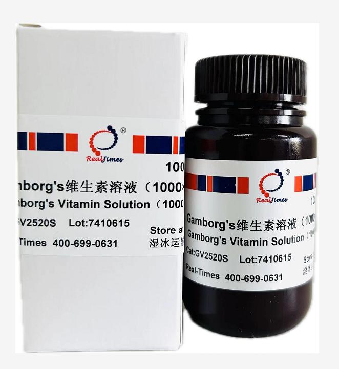 Gamborg's維生素溶液是培養(yǎng)基組份中維生素的單獨(dú)混合物,濃度為1000×,該溶液已經(jīng)抽濾除菌,可以直接添加到培養(yǎng)基中,建議1升培養(yǎng)基中加入1 ml Gamborg's維生素溶液。