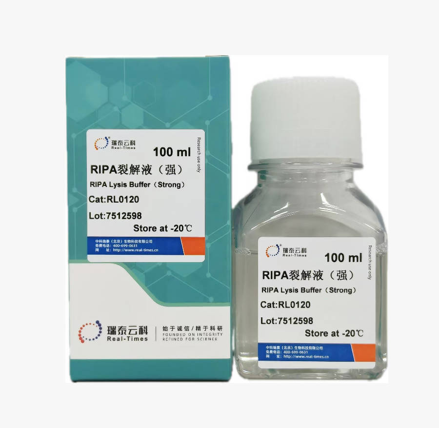 fluoride,EDTA,EGTA等多種抑制劑。可以有效抑制蛋白降解。由于含有較高濃度的Triton X-100等干擾物質(zhì),不能用傳統(tǒng)Bradford法測(cè)定由本裂解液裂解得到樣品的蛋白濃度,可以使用BCA蛋白濃度測(cè)定試劑盒(貨號(hào):RTP7102)或Bradford蛋白濃度測(cè)定試劑盒(去垢劑兼容型)(貨號(hào):RTP7104)測(cè)定蛋白濃度。