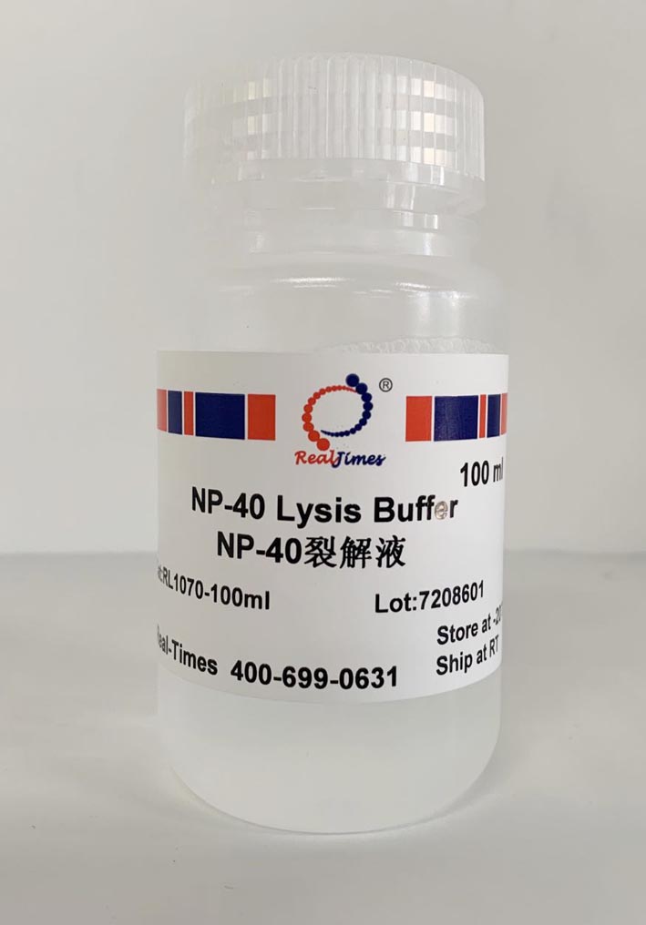 NP-40裂解液(NP-40 Lysis Buffer)是一種比較溫和的細(xì)胞組織裂解液。NP-40裂解液裂解得到的蛋白樣品可以最大限度地保持蛋白的活性狀態(tài)(native),可以用于常規(guī)的Western、IP和co-IP和ELISA等。NP-40裂解液的主要成分為 Tris(pH7.4),NaCl,NP-40等。用NP-40裂解液裂解得到的蛋白樣品,可以用BCA蛋白濃度測(cè)定試劑盒測(cè)定蛋白濃度。由于含有較高濃度的去垢劑,不能用Bradford法測(cè)定樣品的蛋白濃度。