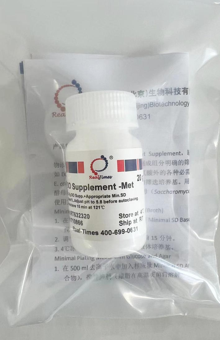 Supplement,缺陷型氨基酸混合物(包含核苷酸),將這些混合物添加到Minimal SD Bases中配制成組分明確的篩選培養(yǎng)基。每種缺陷混合物中缺失特定的氨基酸,如DO supplement -Leu含有除亮氨酸外的各種必需氨基酸。DO Supplements也可以添加到 minimal E. coli medium M9中組成E. coli的篩選培養(yǎng)基。用于酵母雙雜交和酵母單雜交篩營養(yǎng)缺陷型表型的酵母轉(zhuǎn)化株,以及選培養(yǎng)釀酒酵母(Saccharomyces cerevisiae)的大批量培養(yǎng)基。