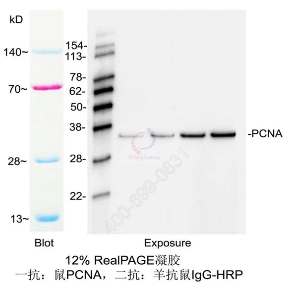 1.1:對于使用一抗為鼠源抗體建議取本產(chǎn)品5 μl進行蛋白電泳;對于使用一抗為兔源抗體可以降低上樣量至3 μl;建議初次使用本產(chǎn)品時可以根據(jù)自身的實驗條件和實驗習慣通過預實驗確定合適的上樣量,以獲得效果更佳的實驗圖片;