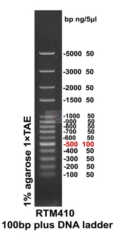 本產(chǎn)品是由14條帶狀雙鏈DNA組成,適用于瓊脂糖凝膠電泳中DNA條帶的分析。本產(chǎn)品為即用型產(chǎn)品,已含有1×loading buffer,可根據(jù)實(shí)驗(yàn)需要,直接取2-5μl電泳,使用方便,電泳圖像清晰。 本產(chǎn)品中14條帶為100200,300,400,500600,700,800,9001000,15002000,3000,5000bp,其中500bp條帶為100ng/5μl,其余條帶濃度為50ng/5μl。