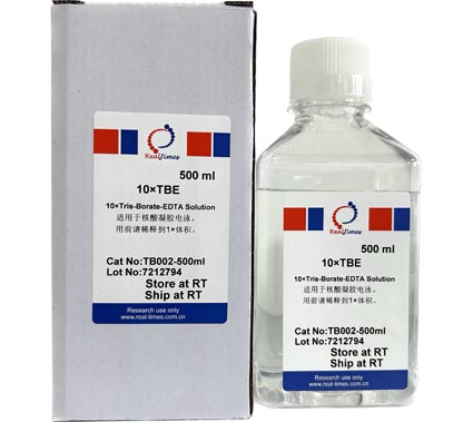 TBE 即 Tris-Borate-EDTA buffer ,10×TBE是10 倍濃縮的 TBE,使用時(shí)需用蒸餾水稀釋 10倍后再使用,1×TBE工作液中組份濃度:89 mM Tris-borate,2 mM EDTA,pH8.0。
