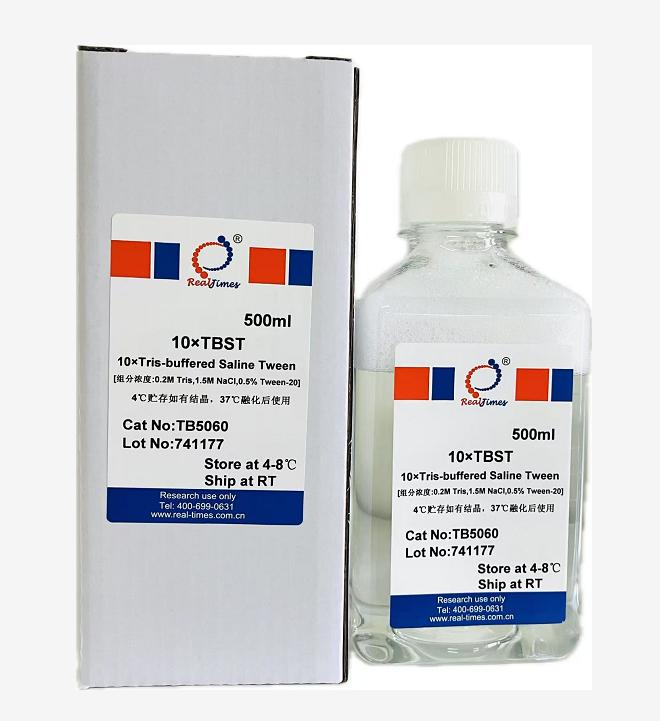 本產(chǎn)品為10×母液,用前用蒸餾水稀釋為1×TBST, pH =7.4-7.6,可用于Western